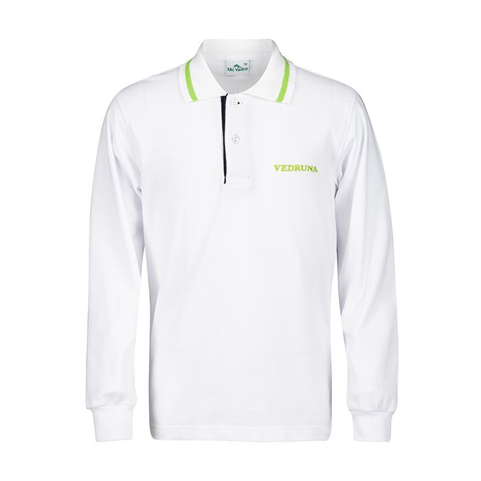 - Polo colegial de manga larga, realizado en piqué con cuello de canalé, puños de elástico